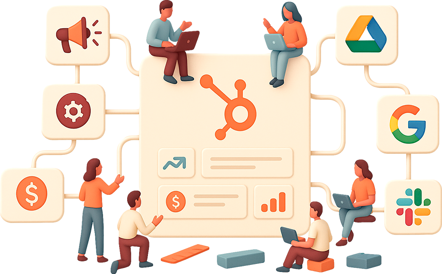We design the ideal HubSpot structure: pipelines, automations, and integrations that connect people, data, and objectives.